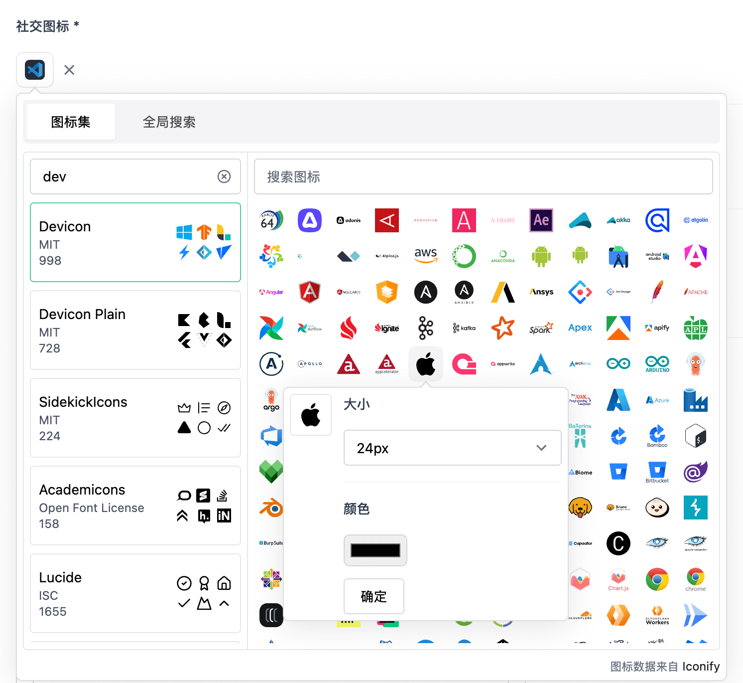 统一的图标选择器,基于 Iconify。
