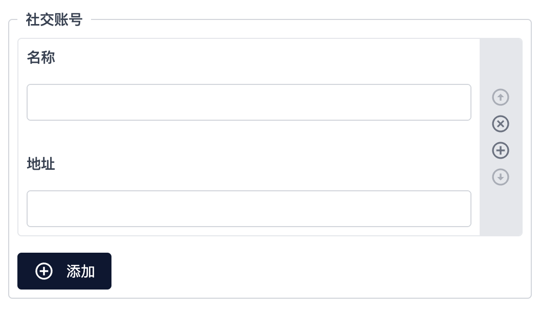 一组重复的输入组件,展示为列表形式,可以用于定义一组数据。最终得到的数据为一个对象的数组,方便使用者对此数组进行增加、删除、排序等操作。